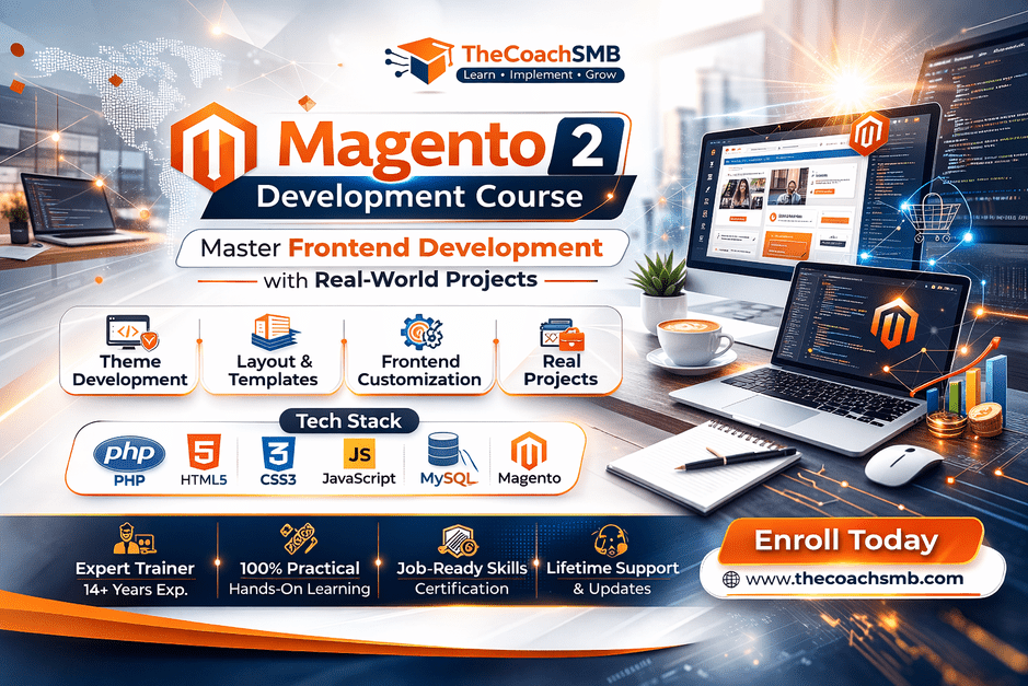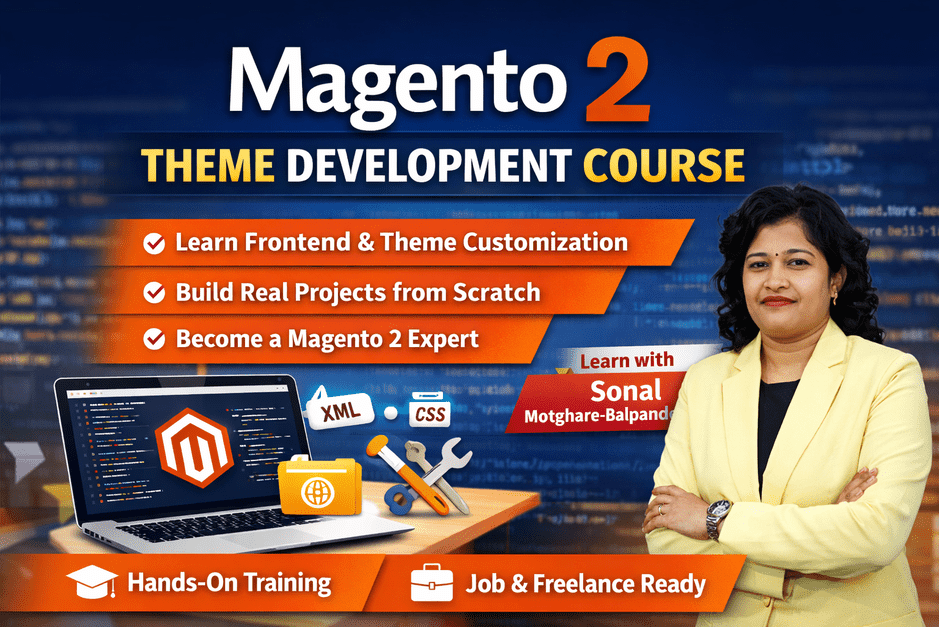 I’m Sonal Motghare-Balpande, Magento Certified Professional with 14+ years of real development experience. At TheCoachSMB, you don’t just watch tutorials — you build real Magento projects and become job-ready.
